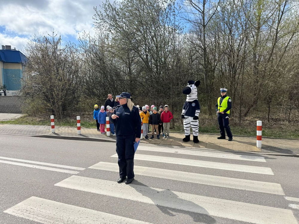 Komisarz Zebra na pasach edukuje przedszkolaki w Grójcu